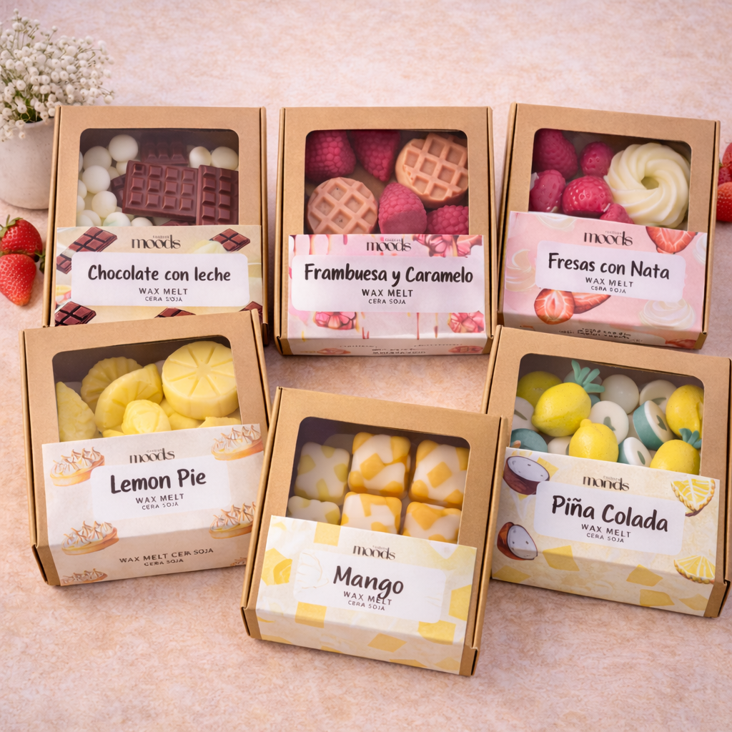 Wax melts artesanales diseñados para perfumar tu hogar con aromas irresistibles. Son pequeñas piezas de cera diseñadas para aromatizar el ambiente intensamente.